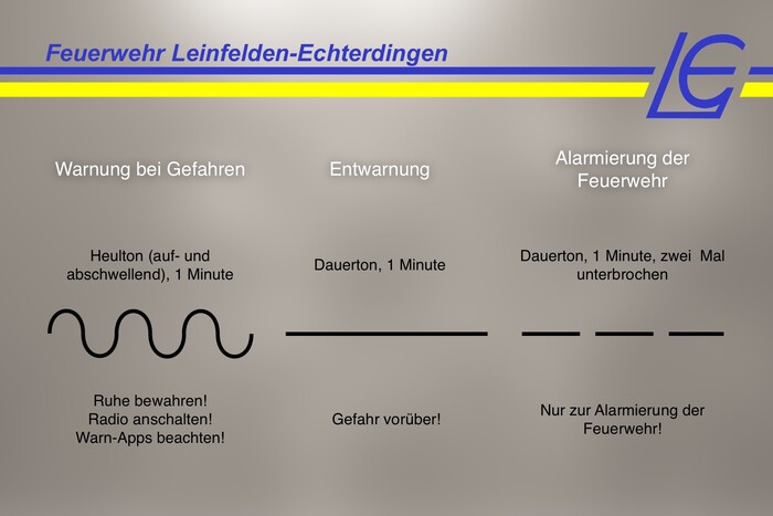 Sirenen sind nach wie vor ein etabliertes Warnmittel mit Weckeffekt. Sie sind vor allem dort sinnvoll, wo die Bevölkerung aufgrund eines besonderen Gefahrenpotentials sehr schnell gewarnt werden muss. Wichtig ist, die Nutzung von Sirenen in ein Gesamtkonzept „Warnung“ einzubinden. Sirenen können die Menschen mit einem akustischen Signal nur auf eine Gefahrenlage aufmerksam machen. Konkrete Informationen zur Gefahrenlage sowie die darauf abgestimmten Handlungsempfehlungen müssen den betroffenen Bürgerinnen und Bürger von anderen Warnmedien wie Radio, Fernsehen, Warn-Apps oder Internetseiten übermittelt werden. Die Nutzung von Sirenen ist also keine Entweder/Oder-Entscheidung, sondern ein „sowohl als auch“ im Rahmen des „Warnmix“. Auch die Stadt Leinfelden-Echterdingen arbeitet am Wiederaufbau eines flächendeckenden Sirenennetzes.