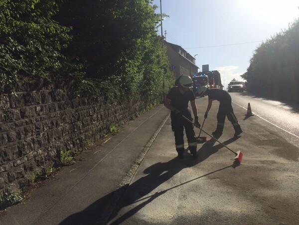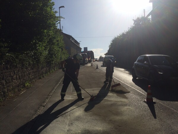 Beseitigung von ausgelaufenen Betriebsstoffe nach einem Verkehrsunfall (Filderstraße)