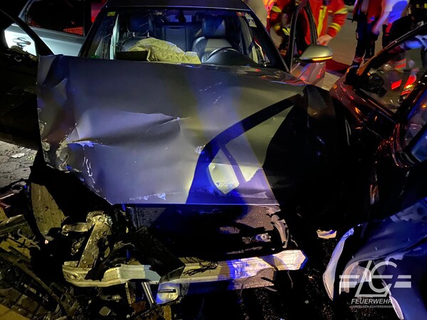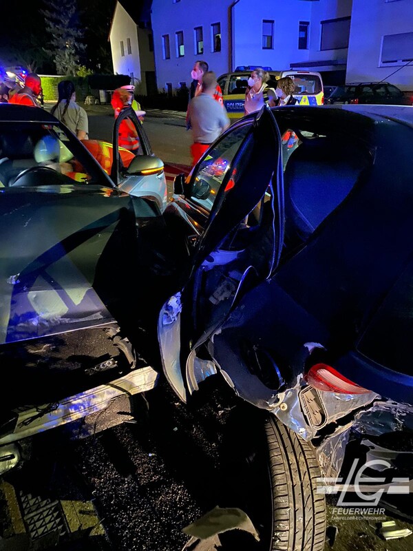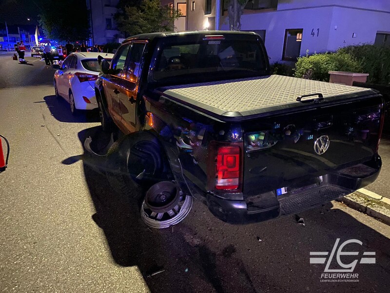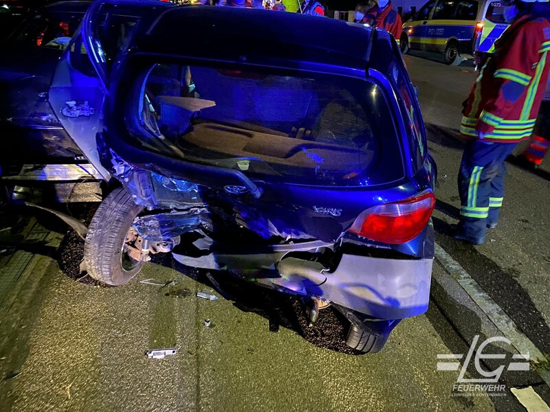 Erstbetreuung und -versorgung zweier verletzter Personen sowie Beseitigung und Aufnahme von ausgelaufenen Betriebsmitteln und Unterstützung bei der Fahrzeugbergung nach einem Verkehrsunfall (Tübinger Straße)