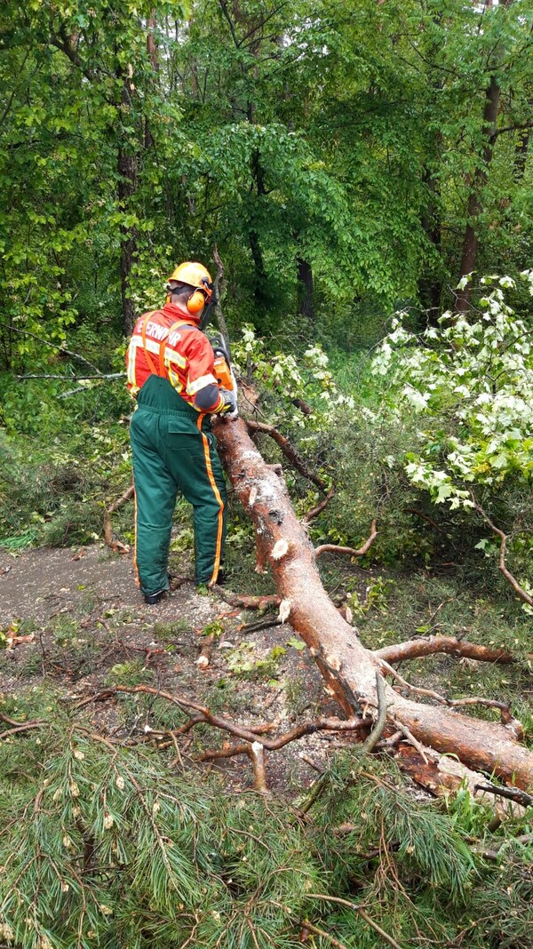 Wir haben ihn auseinander gesägt. Die Straße ist wieder passierbar.
