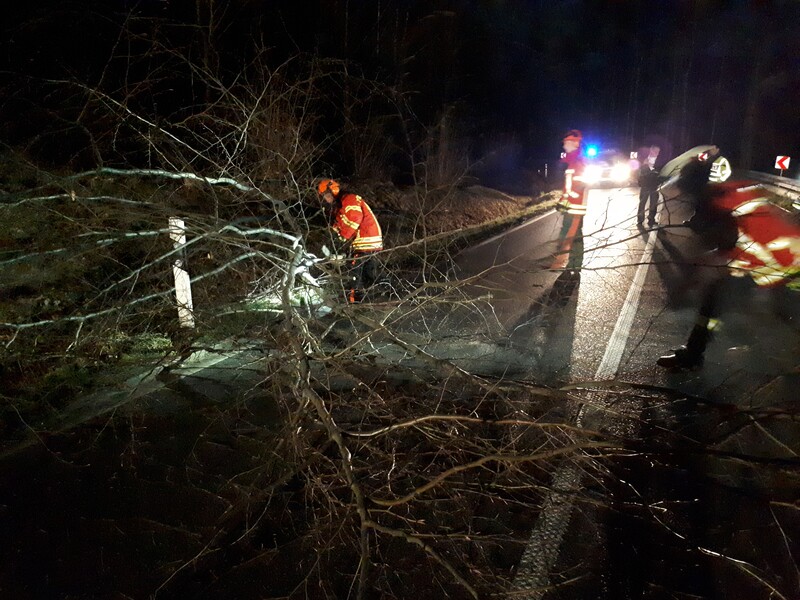 Beseitigung eines umgefallenen Baumes auf der Landstraße zwischen Steinenbronn und Echterdingen