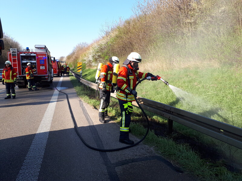 Ablöschen eines kleineren Böschungsbrandes am Seitenstreifen der B27