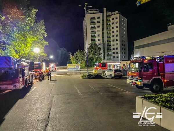 Ausgelöste Brandmeldeanlage in einem Einkaufszentrum aufgrund eines Brandes in einem Technikraum (Adlerstraße)