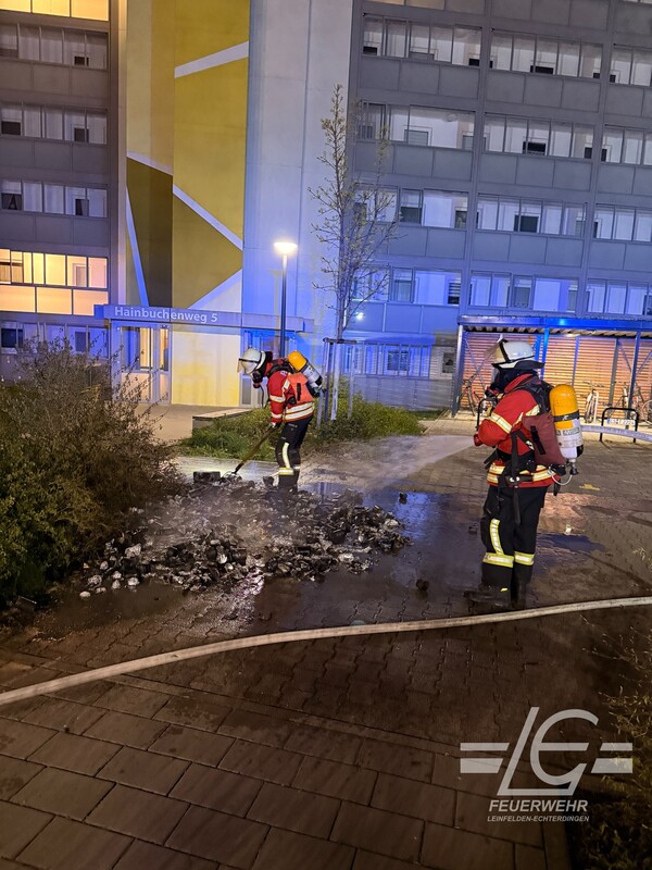 Brand mehrerer zur Abholung bereitgestellter Recyclingsäcke/Gelber Säcke - Erhöhung des Alarms und Verstärkung auf einen Löschzug aufgrund unklarer Lage (Hainbuchenweg)