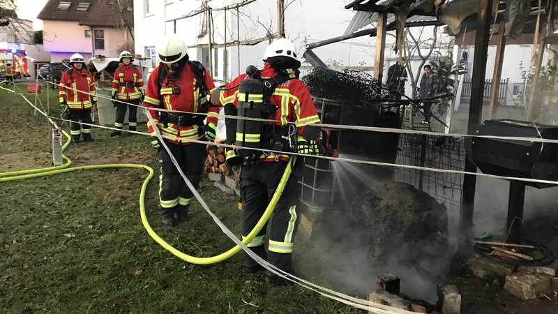 Dort hatte sich durch heiße Asche ein Komposthaufen entzündet. Ein Trupp löschte den Haufen mit einem Strahlrohr. Um alle Glutnester zu beseitigen, wurde der Haufen dabei langsam auseinander gezogen. In Anschluss wurde die Brandstelle mit der Wärmebildkamera kontrolliert.