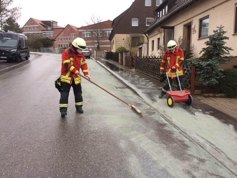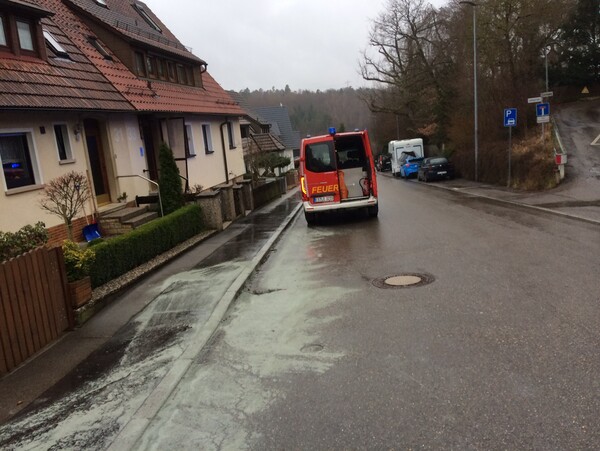 Die Ölspur wurde durch die Feuerwehr abgestreut (Ludwigstraße)