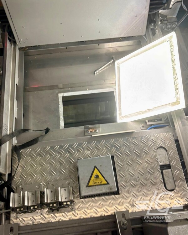 Da die Notsteuerung des Aufzuges nicht reagierte, mussten wir einen alternativen Rettungsweg schaffen. Über eine Öffnung in der Decke des Aufzuges konnten wir die Personen sicher befreien.