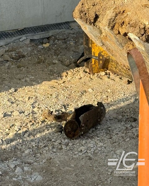 Fund und Ausgrabung einer bereits ausgebrannten Phosphorbombe bei Baggerarbeiten auf einer Baustelle; Sicherstellung des Brandschutzes und Absicherung der Einsatzstelle (Talstraße)