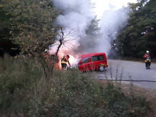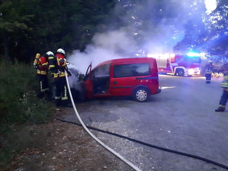 Die ersten Einsatzkräfte fanden ein fast im Vollbrand stehenden Pkw vor. Unter Atemschutz wurde der Pkw mit zwei Rohren abgelöscht. Dazu musste das Fahrzeug gewaltsam geöffnet werden. Durch das rasche Eingreifen der Feuerwehr konnte eine weitere Ausbreitung des Brandes auf den trockenen Gras- und Waldboden verhindert werden. Der Schachschaden konnte weitestgehend auf den Pkw beschränkt werden.