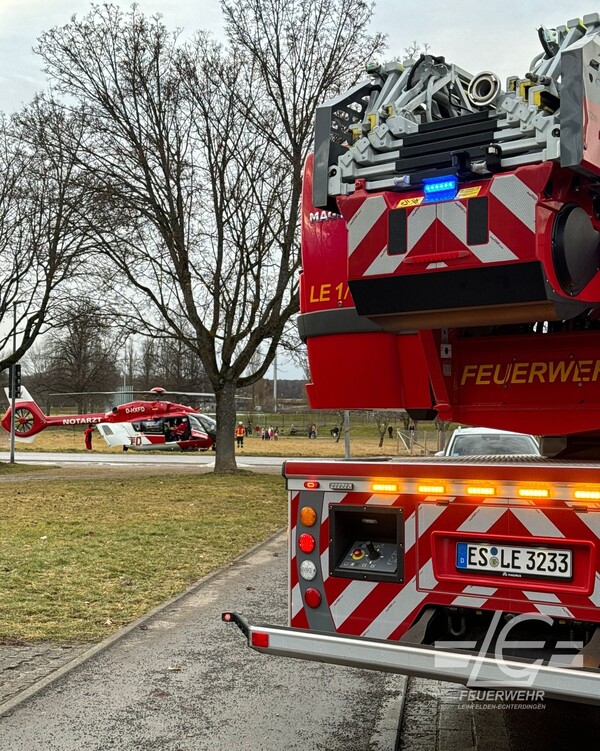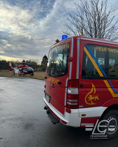 Vor Ort retteten wir eine verletzte Person mit Hilfe der Drehleiter über ein Fenster. Für den weiteren Transport wurde ein Rettungshubschrauber hinzugezogen. Ein Teil unserer Mannschaft holte mit dem MTW die Hubschrauberbesatzung am Landeplatz ab und brachte sie zur Einsatzstelle.