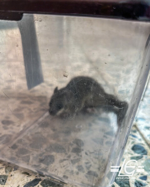Die Bewohnerin führte uns ins 2. OG eines Wohnhauses wo das Tier in einem Abluftschacht vermutet wurde. Von Hand und mit bloßem Auge war der Schacht nicht erreich- und einsehbar. Mit einer Endoskop-Kamera gelang der Blick in den abgewinkelten Schacht. Tatsächlich entdeckten wir einen Siebenschläfer, der wohl schon mehrere Tage in seinem Gefängnis festsaß.