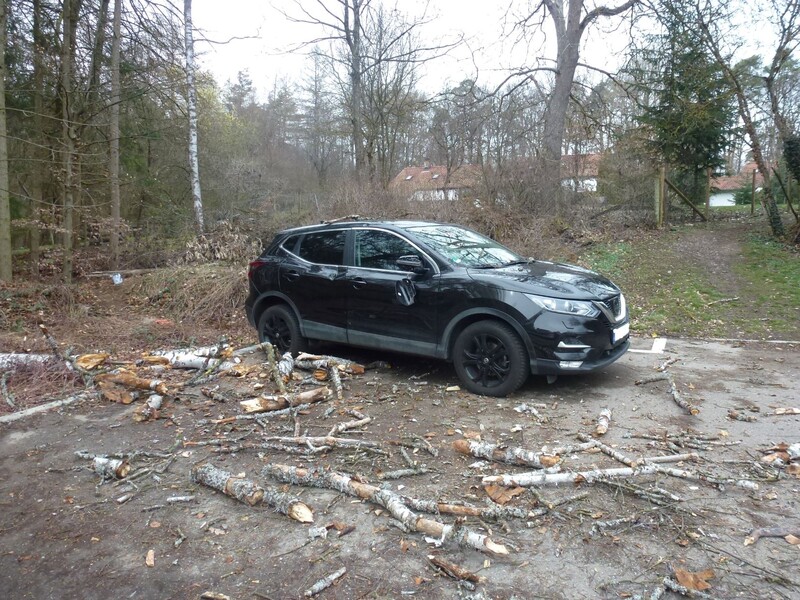 Sturmschaden - Beseitigung eines auf einen geparkten Pkw herabgestürzten Baumstammes (Weißenbildstraße)