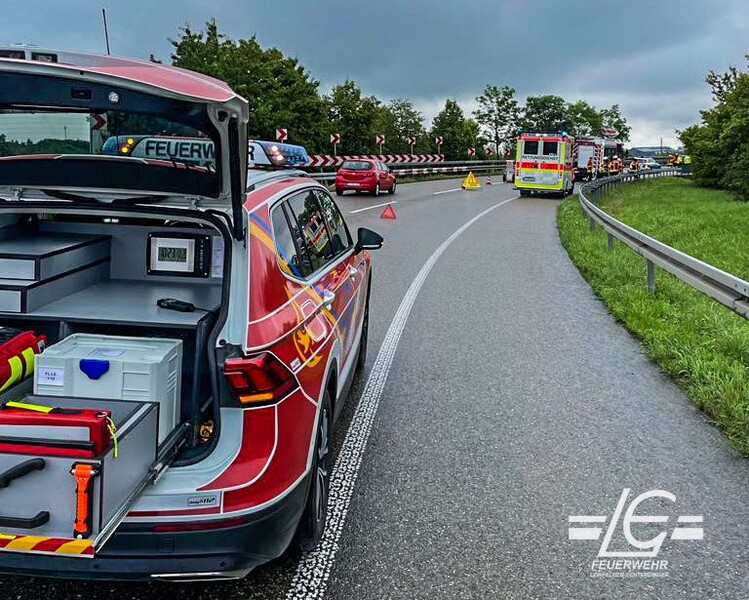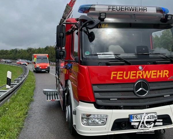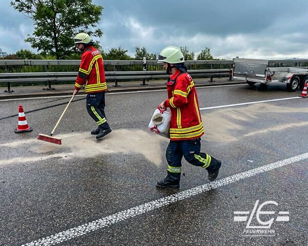 Beseitigung von ausgelaufenen Betriebsstoffe nach einem Verkehrsunfall (Überleitung BAB 8 → M - B27 → TÜ)