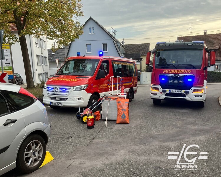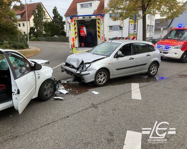 Verkehrsunfall - Kollision zweier Pkw im Kreuzungsbereich; eine leicht verletzte Personen, Beseitigung von ausgelaufenen Betriebsstoffen (Karlstraße/Filderstraße/Büsnauer Straße)