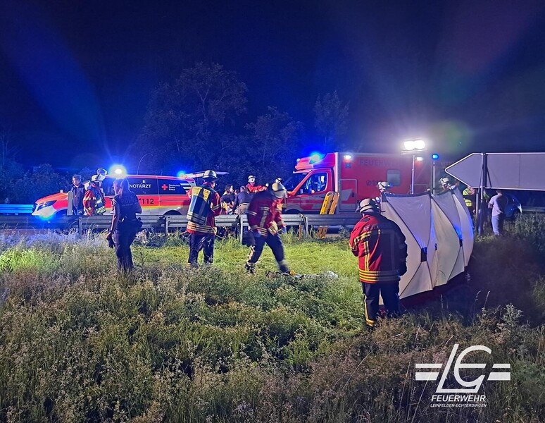 Die Abteilung Stetten wurde zu einem Verkehrsunfall mit einem Motorrad gerufen. Auf der Abfahrt der B 27 kam ein Motorradfahrer von der Fahrbahn ab, geriet über die Leitplanke und blieb im Grünstreifen liegen. Die Feuerwehr unterstützte den Rettungsdienst bei der Versorgung des Schwerverletzten, sicherte die Unfallstelle ab, leuchtete diese aus und errichtete eine Sichtschutzwand, bis der Motorradfahrer in den Rettungswagen transportiert war. (B27 → TÜ, AS LE-Süd)