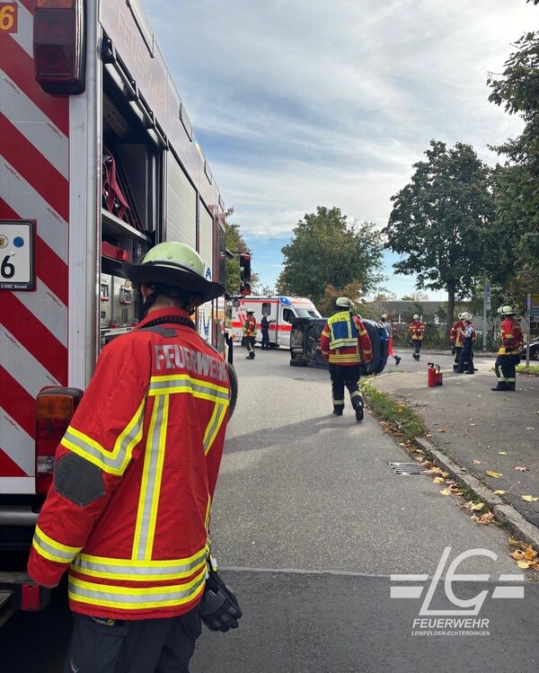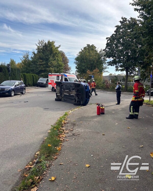 Umgestürzter und auf der Seite liegengebliebener Pkw - keine Person eingeklemmt (Bernhäuser Straße)