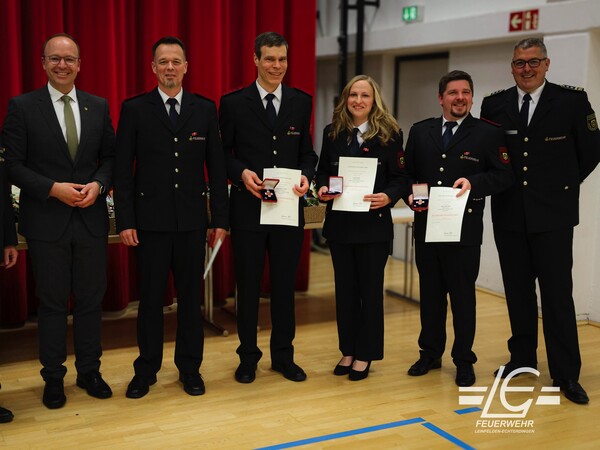 Für 25 Jahre aktiven Dienst: Jutta Betz, Michael Leich, Tobias Maier, Markus Koch, Andreas Marquart