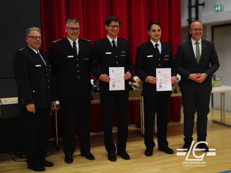 Ehrenspange in Bronze des Kreisfeuerwehrverbandes ES-NT: Markus Zimmermann, Matthias Herthneck