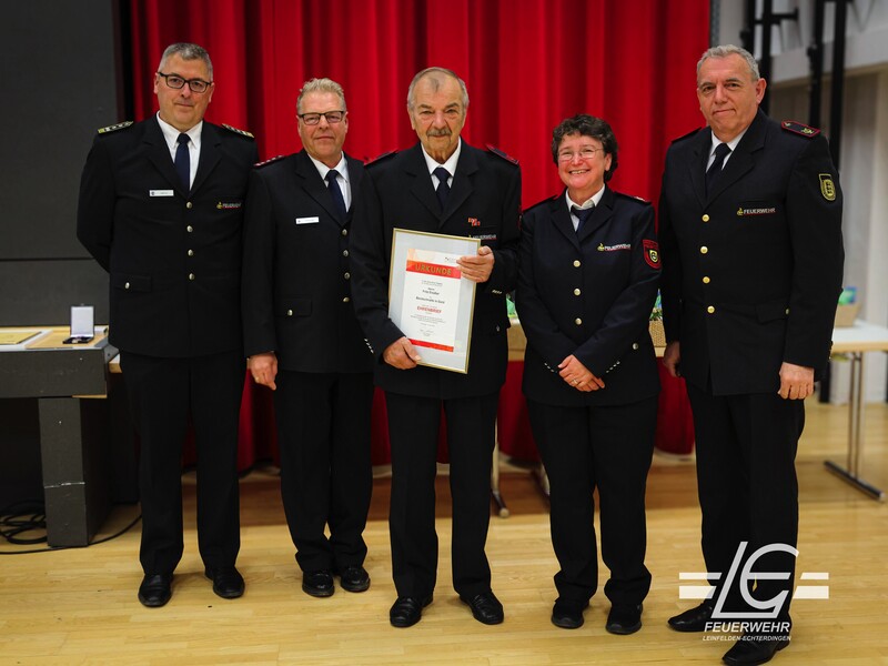 Zum Abschluss der Ehrungen gab es dann noch eine Sonderehrung für Oberbürgermeister a. D. Roland Klenk. So wurde Klenk einerseits zum Ehrenmitglied der Feuerwehr Leinfelden-Echterdingen ernannt und ihm zudem die Deutsche Feuerwehr Ehrenmedaille verliehen.